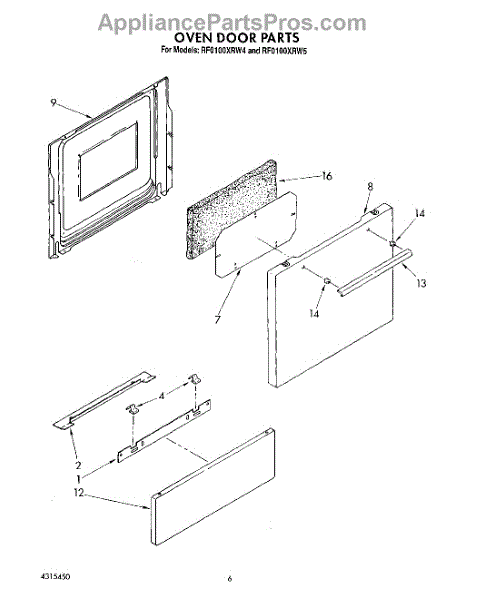 Parts for Whirlpool RF0100XRW4: 05 - Oven Door Parts