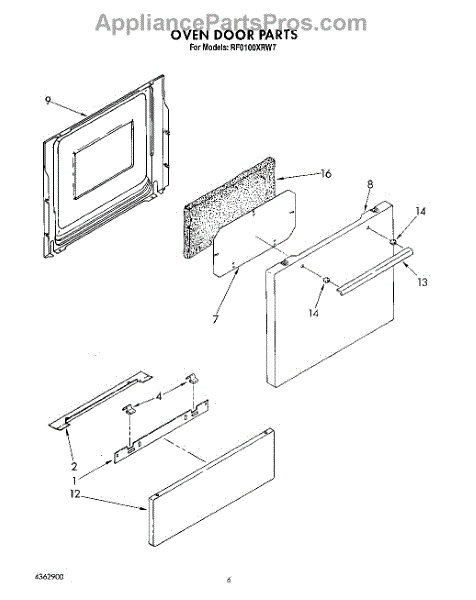 Parts for Whirlpool RF0100XRW7: 05 - Oven Door Parts