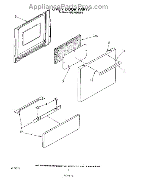 Parts for Whirlpool RF010EXRW2: 05 - Oven Door Parts