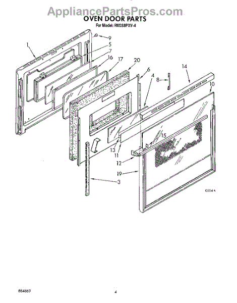 Parts for Whirlpool RM288PXV4: 03 - Oven Door Parts