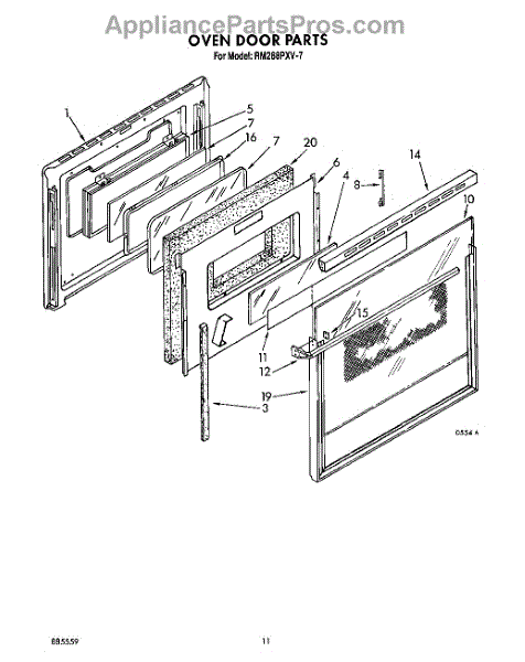 Parts for Whirlpool RM288PXV7: 08 - Oven Door Parts