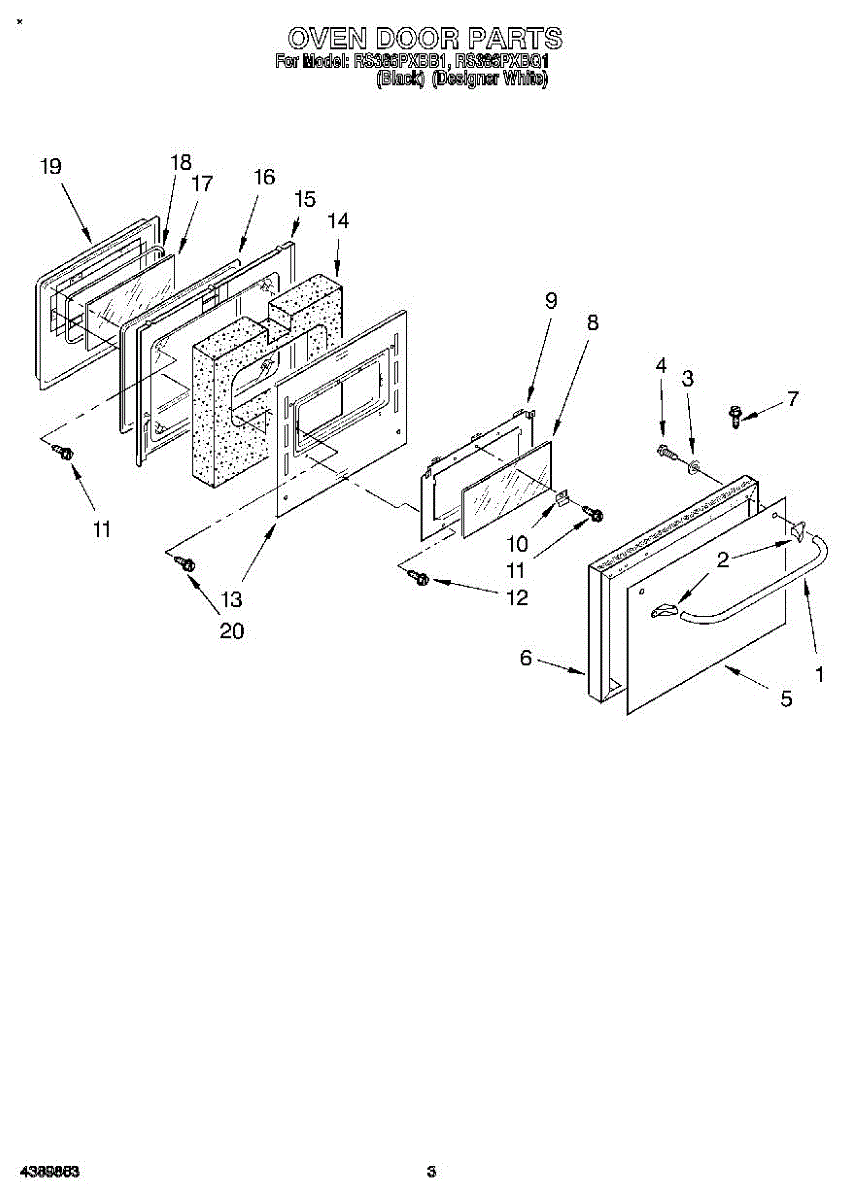Parts for Whirlpool RS386PXBQ1: 03 - Oven Door Parts
