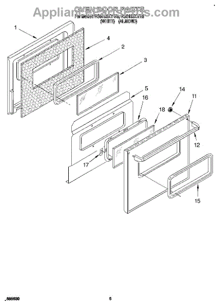 Parts for Whirlpool RS6105XYW5: 04 - Oven Door Parts