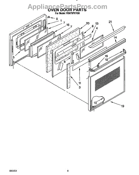 Parts for Whirlpool RS675PXYH0: 06 - Oven Door Parts