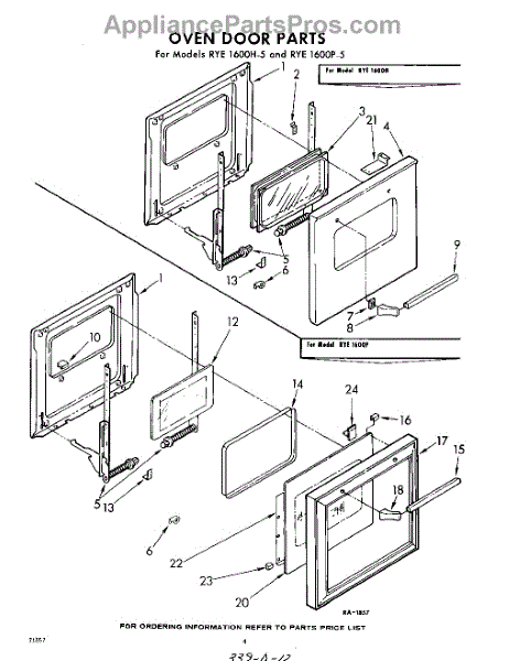 Parts for Whirlpool RYE1600W5: 04 - Oven Door Parts