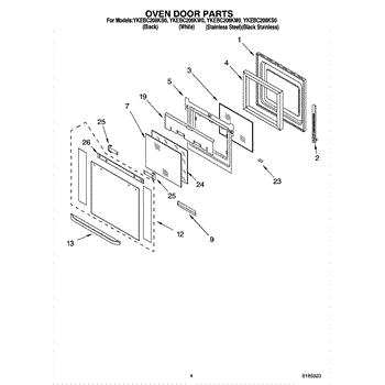 Parts for Whirlpool YKEBC208KS0: 03 - Oven Door Parts