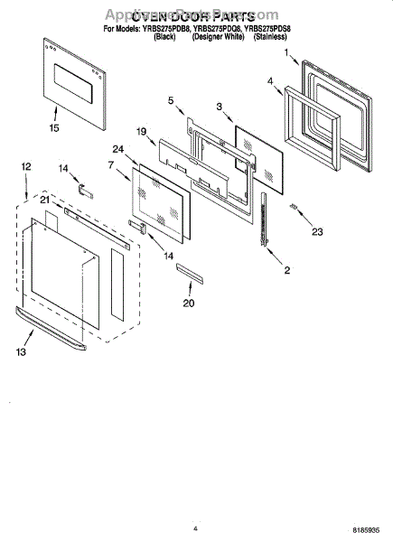 Parts for Whirlpool YRBS275PDQ8: 03 - Oven Door Parts