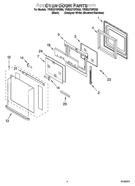 Parts for Whirlpool YRBS275PDS9: 03 - Oven Door Parts