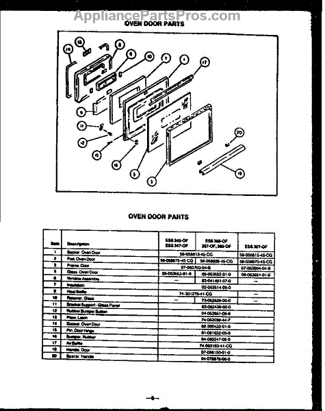 Parts for Caloric ESS345-OF: Oven Door Parts