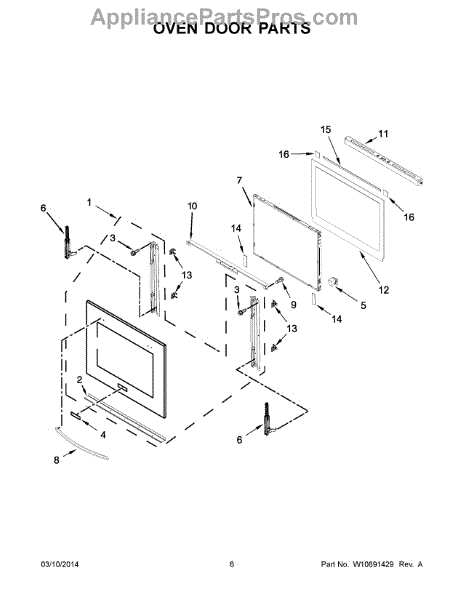 Maintains oven door structure and secures the glass panels in place. Replace if cracked, broken, or missing to restore proper door assembly and fit.