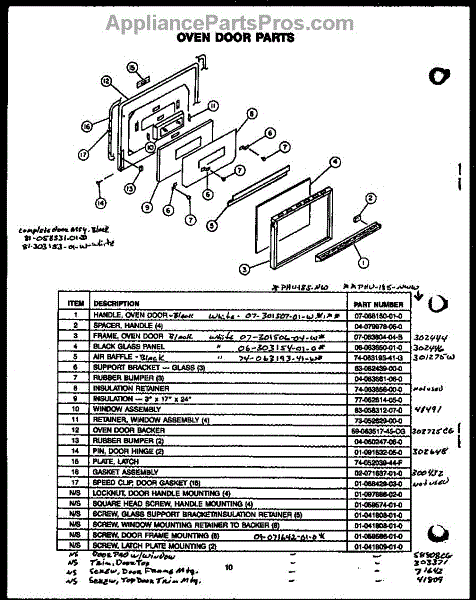 Parts for Modern Maid PHU185: Oven Door Parts