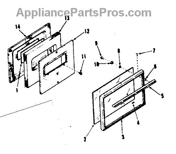 Parts for Kenmore 911.6168610 (9116168610, 911 6168610): Oven Door Section Parts