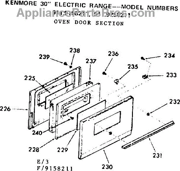 Parts for Kenmore 911.9158211 (9119158211, 911 9158211): Oven Door Section Parts