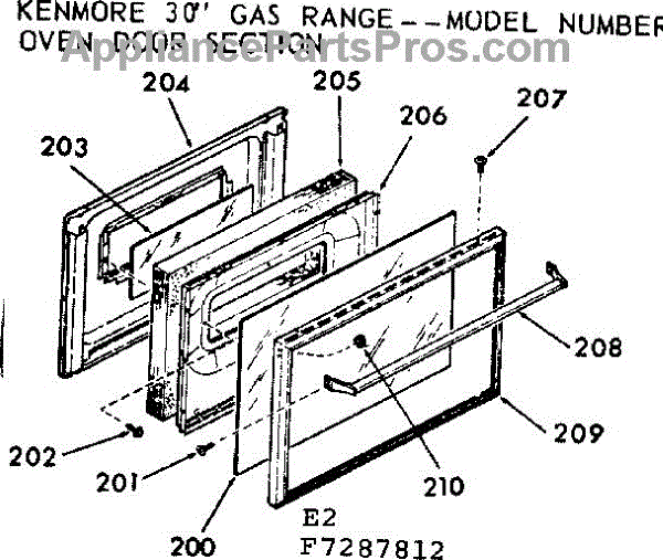 Parts for Kenmore 103.7287812 (1037287812, 103 7287812): Oven Door Section Parts