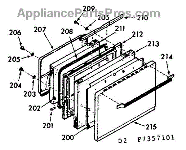 Parts for Kenmore 103.7357101 (1037357101, 103 7357101): Oven Door Section Parts