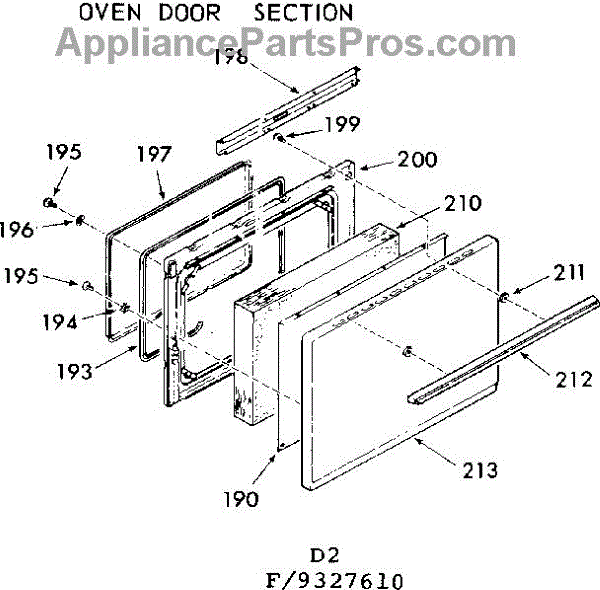 Parts for Kenmore 103.9327610 (1039327610, 103 9327610): Oven Door Section Parts