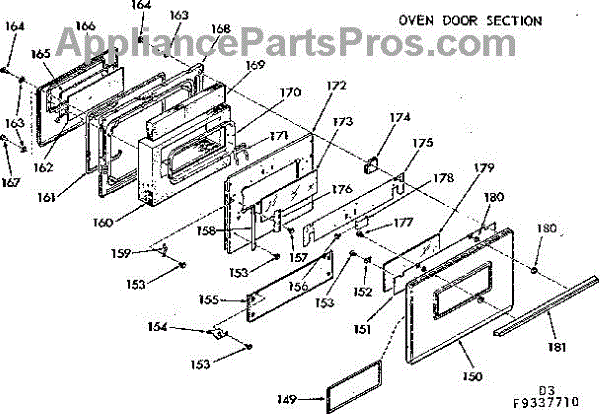 Parts for Kenmore 103.9337710 (1039337710, 103 9337710): Oven Door Section Parts