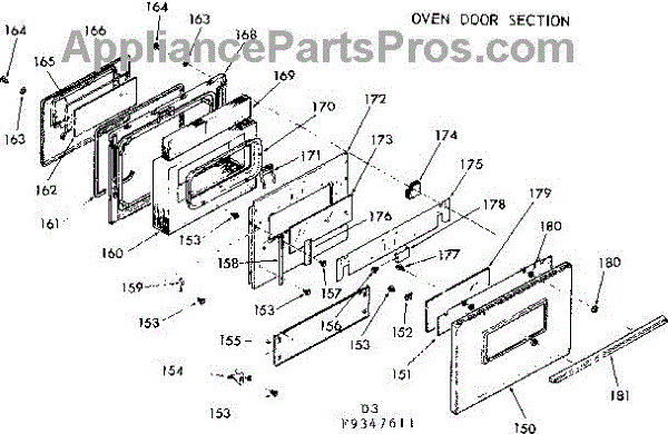 Parts for Kenmore 103.9347611 (1039347611, 103 9347611): Oven Door Section Parts