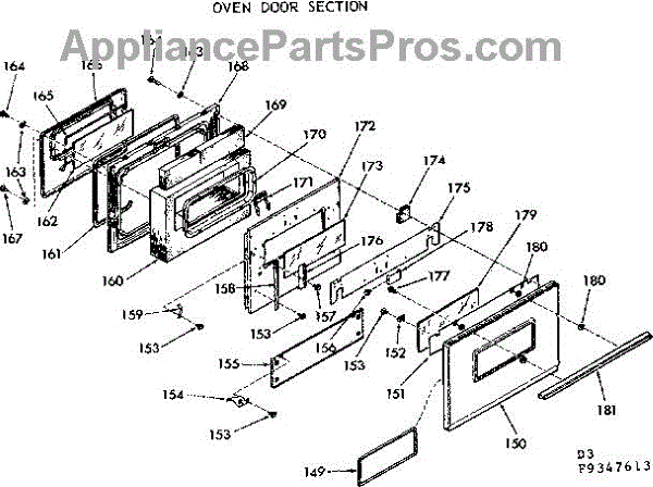 Parts for Kenmore 103.9347613 (1039347613, 103 9347613): Oven Door Section Parts