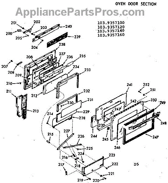 Parts for Kenmore 103.9357100 (1039357100, 103 9357100): Oven Door Section Parts