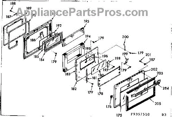 Parts for Kenmore 103.9357560 (1039357560, 103 9357560): Oven Door Section Parts