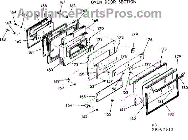 Parts for Kenmore 103.9367613 (1039367613, 103 9367613): Oven Door Section Parts