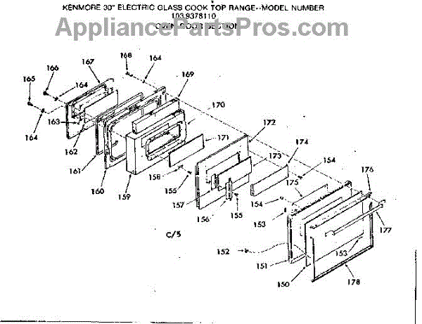 Parts for Kenmore 103.9378110 (1039378110, 103 9378110): Oven Door Section Parts