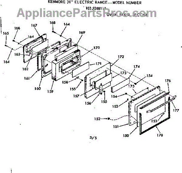 Parts for Kenmore 103.9388110 (1039388110, 103 9388110): Oven Door Section Parts
