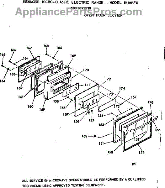 Parts for Kenmore 103.9877915 (1039877915, 103 9877915): Oven Door Section Parts