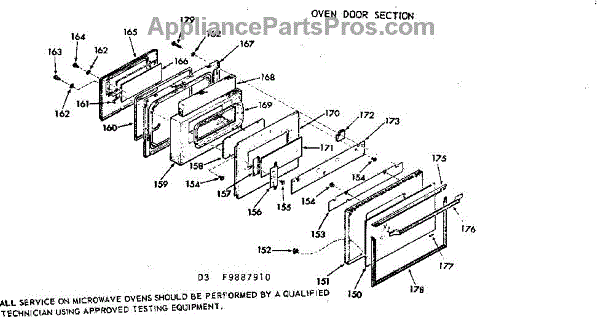 Parts for Kenmore 103.9887910 (1039887910, 103 9887910): Oven Door Section Parts