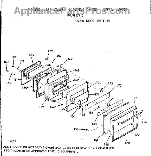 Parts for Kenmore 103.9887913 (1039887913, 103 9887913): Oven Door Section Parts