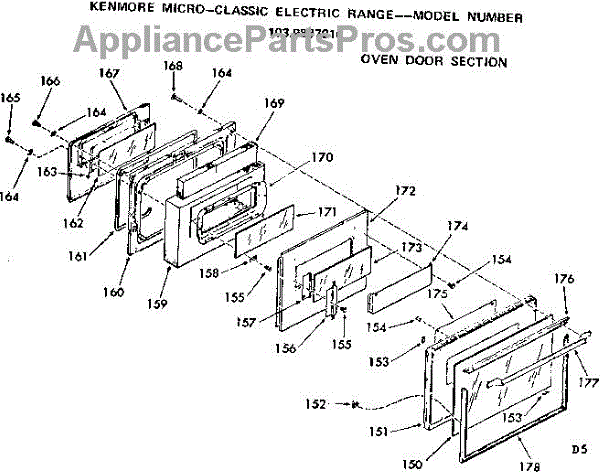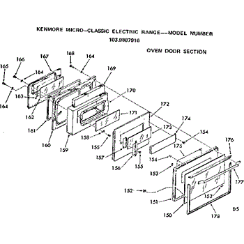 Parts for Kenmore 103.9887916 (1039887916, 103 9887916): Oven Door Section Parts