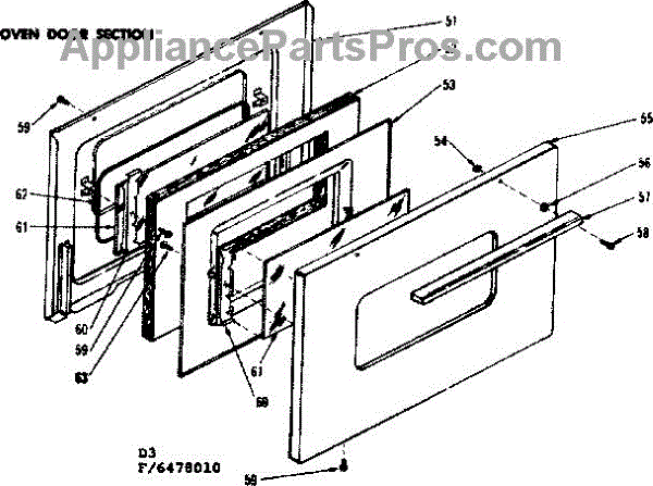 Parts for Kenmore 119.6488011 (1196488011, 119 6488011): Oven Door Section Parts