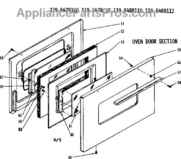 Parts for Kenmore 119.6488112 (1196488112, 119 6488112): Oven Door Section Parts