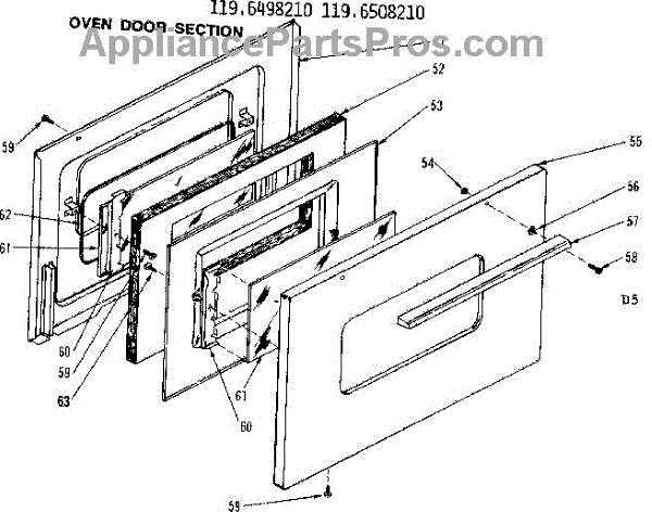 Parts for Kenmore 119.6508210 (1196508210, 119 6508210): Oven Door Section Parts