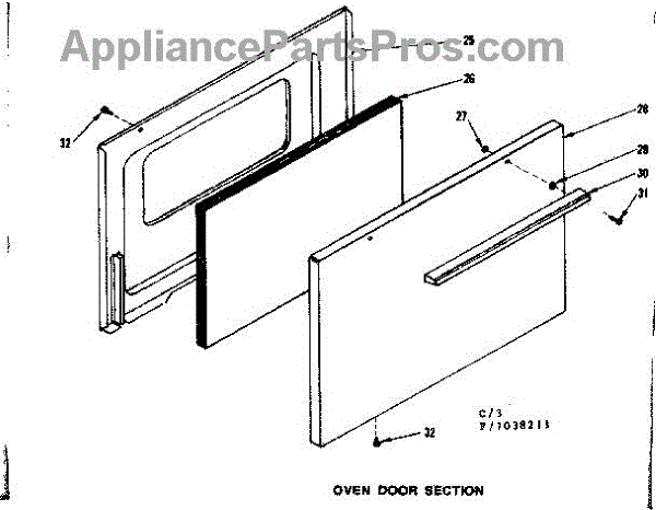 Parts for Kenmore 119.7038211 (1197038211, 119 7038211): Oven Door Section Parts