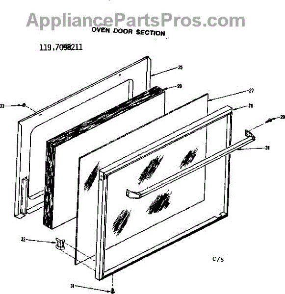 Parts for Kenmore 119.7098211 (1197098211, 119 7098211): Oven Door Section Parts
