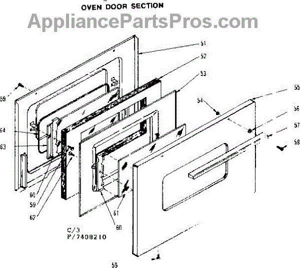 Parts for Kenmore 119.7408210 (1197408210, 119 7408210): Oven Door Section Parts