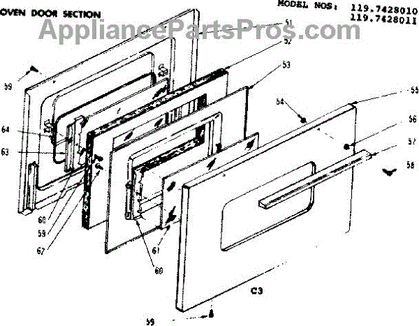 Parts for Kenmore 119.7428010 (1197428010, 119 7428010): Oven Door Section Parts