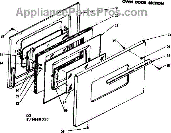 Parts for Kenmore 119.9068011 (1199068011, 119 9068011): Oven Door Section Parts