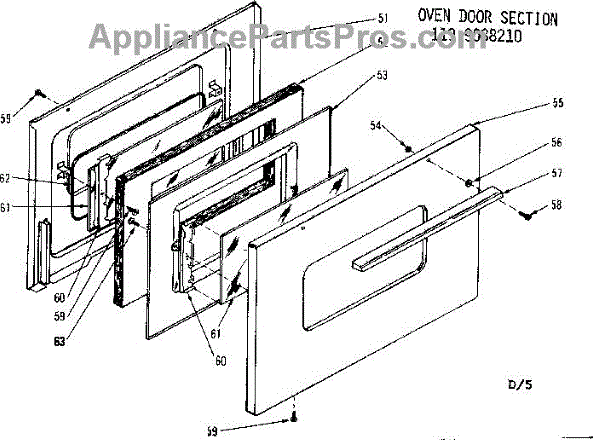 Parts for Kenmore 119.9088210 (1199088210, 119 9088210): Oven Door Section Parts