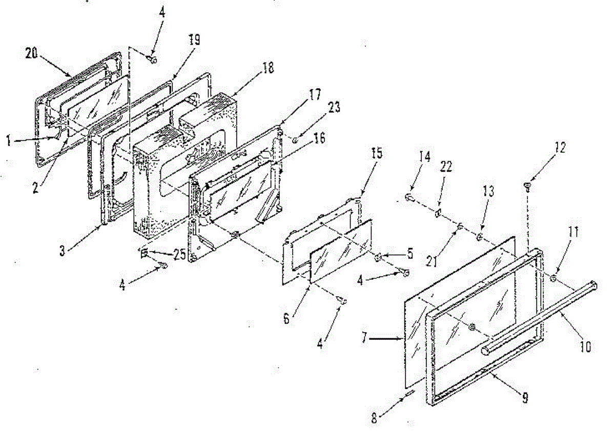 Intermediate glass panel for oven doors. Installs between inner and outer door glass. Replace if cracked, shattered, or broken to restore appearance.