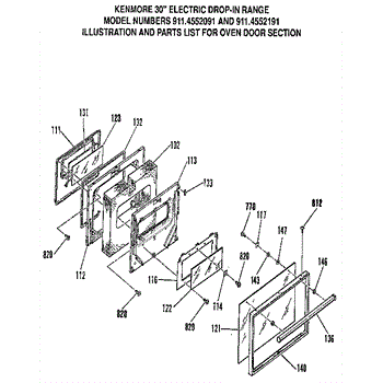 Parts for Kenmore 911.4552091 (9114552091, 911 4552091): Oven Door Section Parts