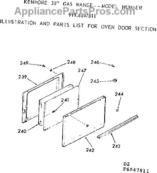 Parts for Kenmore 911.6047811 (9116047811, 911 6047811): Oven Door Section Parts