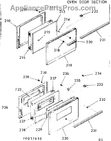 Parts for Kenmore 911.6057640 (9116057640, 911 6057640): Oven Door Section Parts