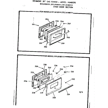 Parts for Kenmore 911.6108111 (9116108111, 911 6108111): Oven Door Section Parts