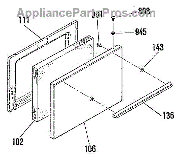 Parts for Kenmore 911.6108911 (9116108911, 911 6108911): Oven Door Section Parts