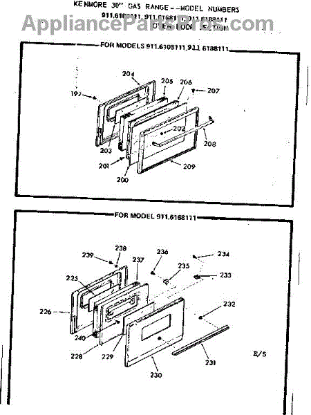 Parts for Kenmore 911.6188111 (9116188111, 911 6188111): Oven Door Section Parts
