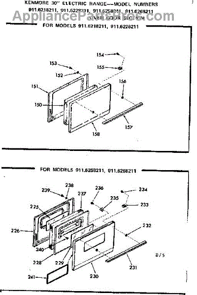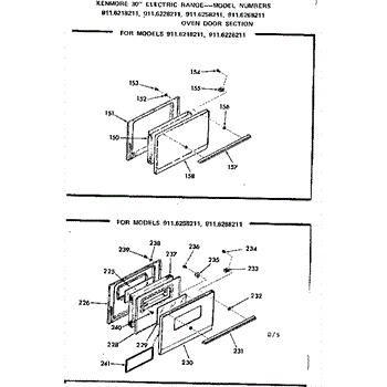 Parts for Kenmore 911.6258211 (9116258211, 911 6258211): Oven Door Section Parts