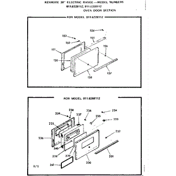 Parts for Kenmore 911.6268112 (9116268112, 911 6268112): Oven Door Section Parts
